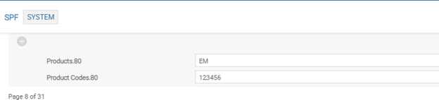 - In the SPF SYSTEM record, specify the new product and its corresponding product code.