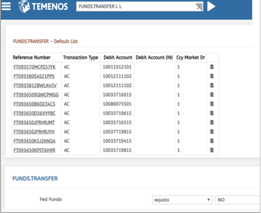 The below FUNDS.TRANSFER-201809 example shows you the list of data items from corresponding table that are restructured according to the criteria defined in restructure definition.