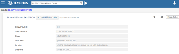 - Open EB.CONVERSION.EXCEPTION to check the conversion errors.