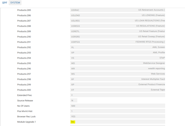 The T24.UPGRADE service also updates the SPF SYSTEM record as shown below.