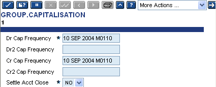GROUP.CAPITALISATION application specifies the next date and subsequent frequency of application of debit and credit interest, for a group of accounts.