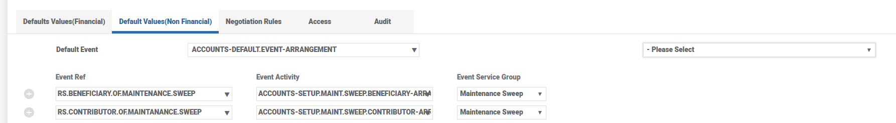 - A non financial ACCOUNTS-SETUP.MAINT.SWEEP.BENEFICIARY-ARRANGEMENT Activity is triggered under the ACCOUNTS-RECORD.EVENT-ARRANGEMENT Activity Class and this is grouped under the Maintenance Sweep group defined in AA.SERVICE virtual table.