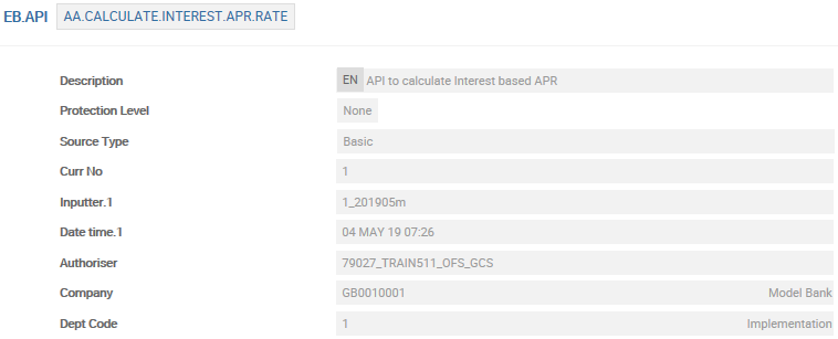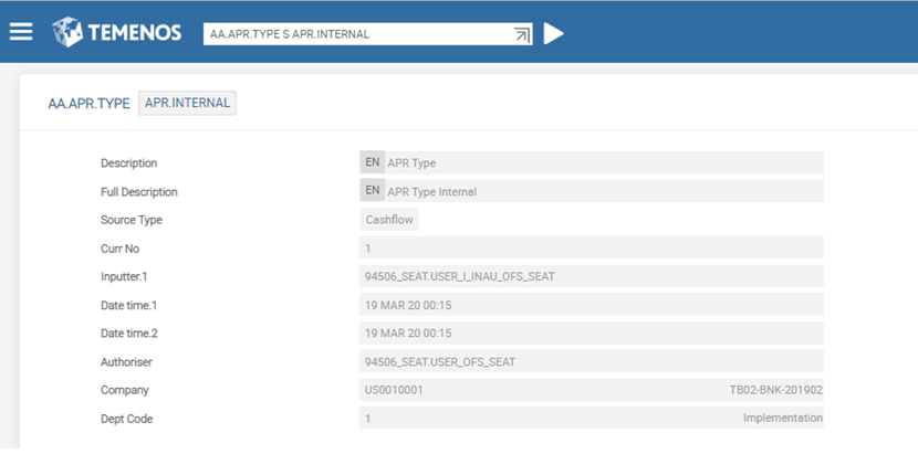 - Setup for APR calculation in AA.APR.TYPE is shown below