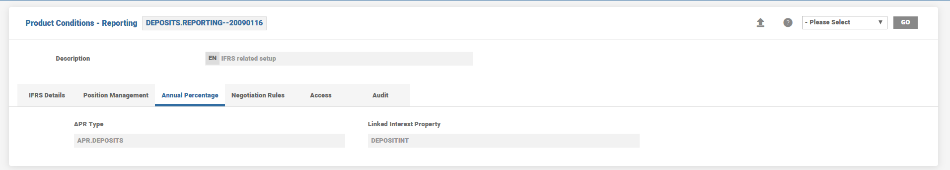- The APR calculation is supported for Deposits, Lending and Account product lines.