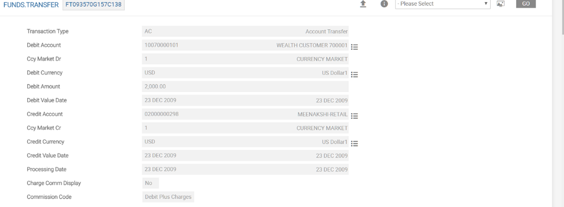 The system triggers the AA.ARRANGEMENT.ACTIVITY for the above Funds Transfer.