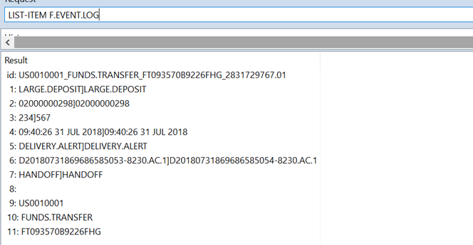 The system updates the Event list file with the two Events under the FT transaction reference.