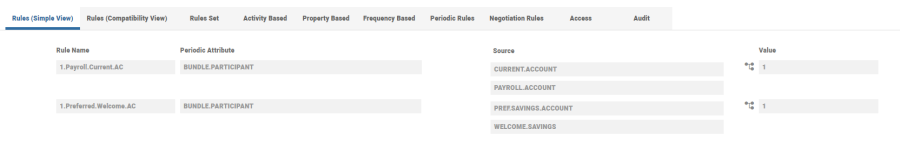 | PROP.EVALUATE | User can specify the Interest / Charge Property for which one or more rules should be evaluated. User can specify if the rule(s) should be satisfied or broken and depending on the result the Property has to be applied or waived. |