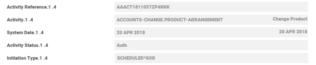 | 20 April 2018 | 1st Qualifier review COB | Current account changed to Payroll account | The Change Product activity was executed by the system based on the evaluation rules |