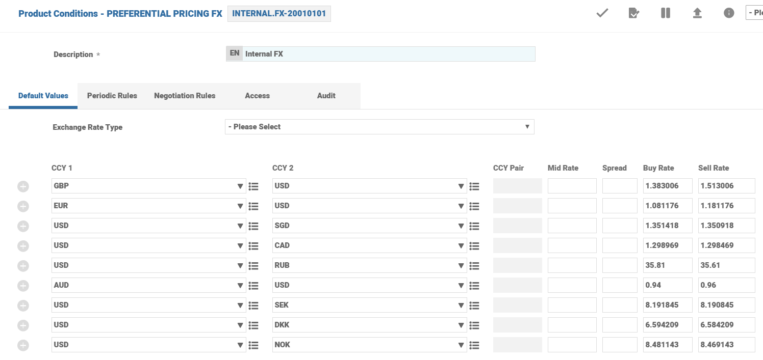 - The user can set the FX rates at either product level or Pricing arrangement level.