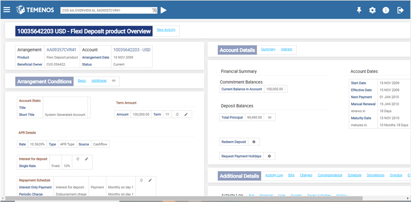 - The APR calculation is supported for Deposits, Lending and Account product lines.