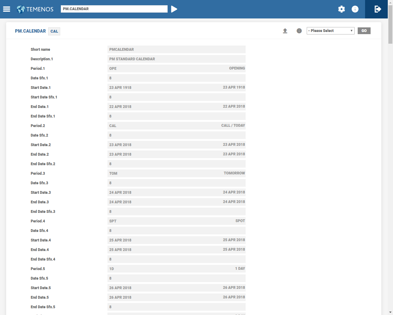 This is the main PMenquiry parameter application, which holds the definitions of PM enquiries and their content. Its key is the user defined position type, such as GAP for the interest gap enquiry.