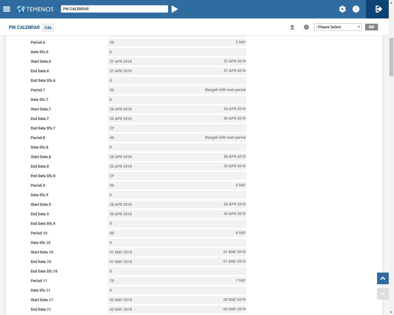 There are two ways in which PM records may be consolidated by periods – through entry of a PM.CALENDAR record in the Calendar field on PM.ENQ.PARAM, or by an entry into the Consol Period field.