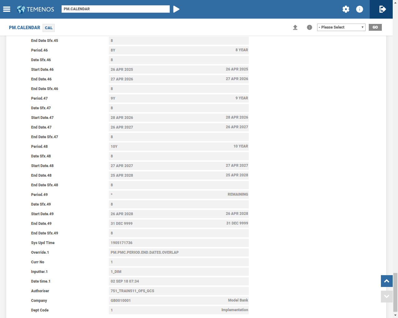 - Defines the forward periods to be displayed by specifying which PM calendar (