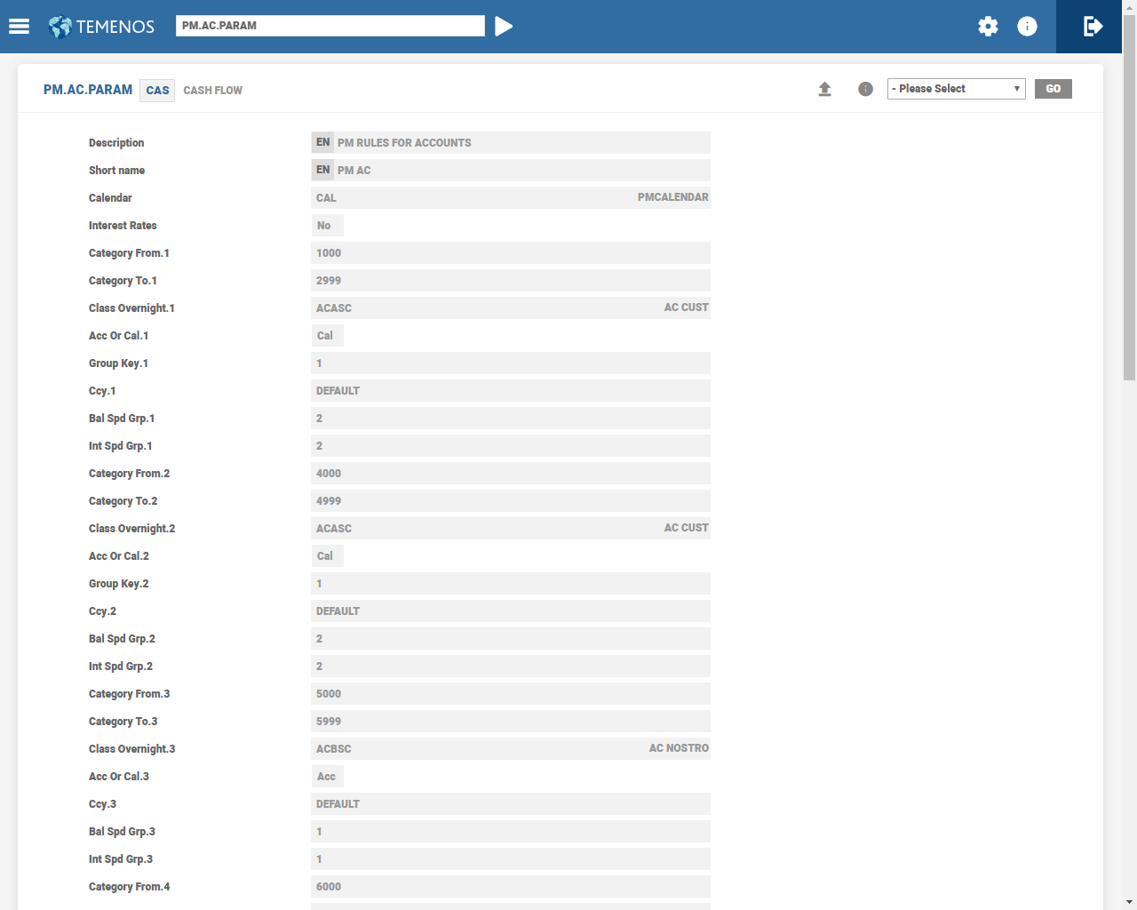 It is possible to define more than one PM.AC.PARAM record, if necessary. For example, to setup different spreading characteristics for the same range of account categories.
