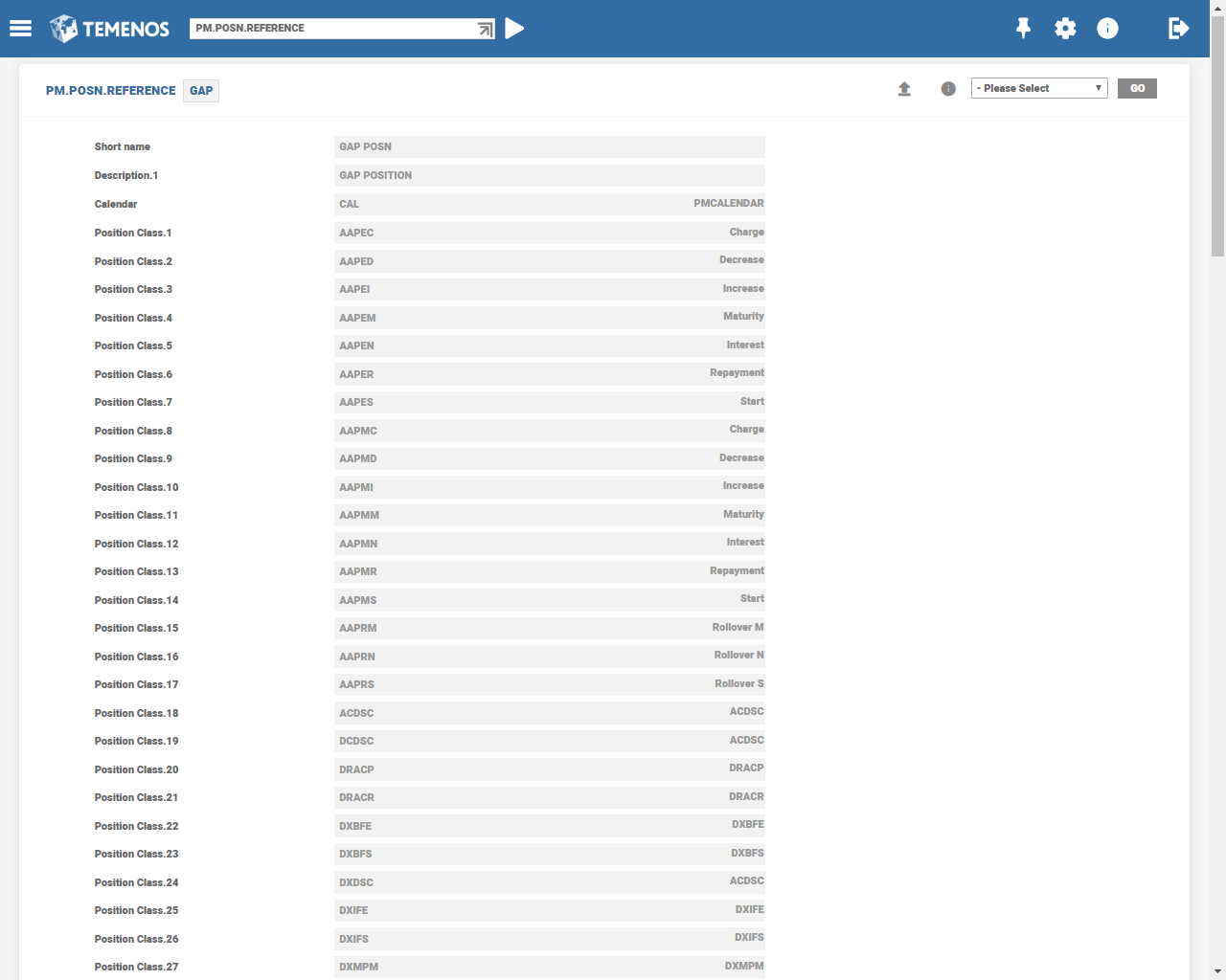 Users setup PM.POSN.CLASS table to identify all the individual activities for each relevant Temenos Transact transaction, each with a unique ID and description. This unique ID can be appended to individual activity records and referenced by other programs (as appropriate) in the construction of enquiry records.