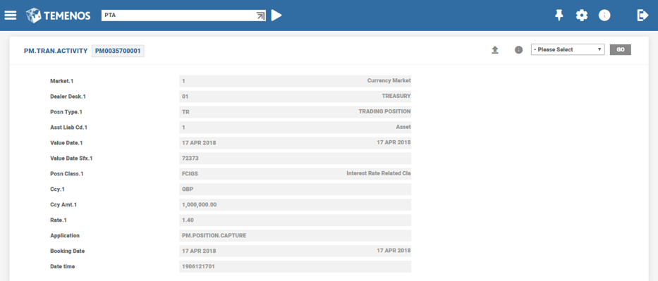 The subsequent reflection of position movement data in PM enquiries is taken care automatically and the position data is included in the relevant position enquiries. For example, in this case PM.GAP enquiry. If the item need not be added in PM enquiries,the PM.POSITION.CAPTURE record can be reversedat any point before reaching the value date.