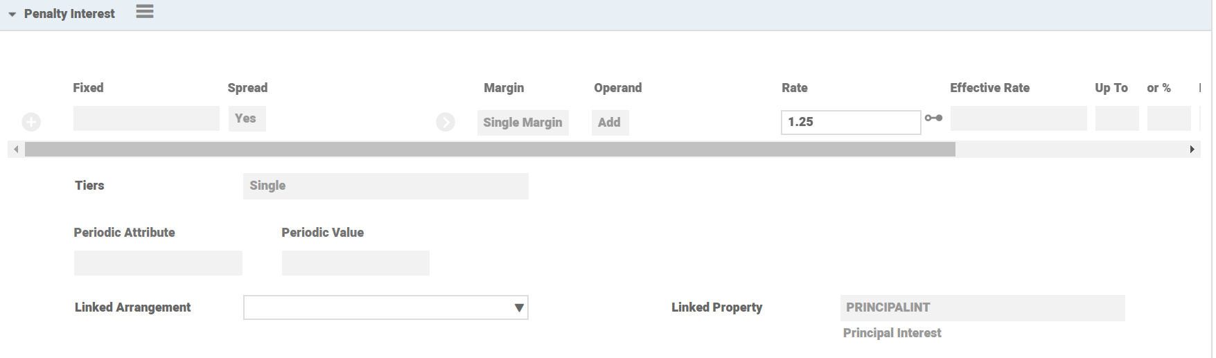 While creating an arrangement under MORTGAGE.LINK product, the screens for PENALTYINT and NEWARRFEE are as below: