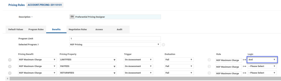 - If multiple rules are defined for a Pricing Benefit, then the value in Logic field decides whether any one rule or all rule must qualify for the Pricing Benefit to be passed on to customer.