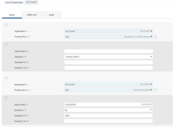 The LIMIT.PARAMETER application allows the creation of other record IDs besides SYSTEM. These record IDs can have a valid legacy application (that is, ACCOUNT, LD, MM and FOREX) as ID. The purpose of these records is to move their parametersation, which was initially done in the SYSTEM record, to new individual records for each application to improve system performance.