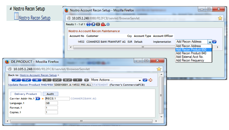 - Delivery module for sending and receiving statements, that is, MT940/MT950 from nostro banks for reconciliation.