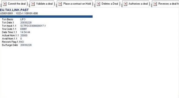All transactions prior to the purge date that has an available nominal of zero are purged and moved during the course of next COB. The below screenshots show the Eu Purge Date field in EU.TAX.PARAM, EU.TAX.LINK and EU.TAX.LINK.PAST application.