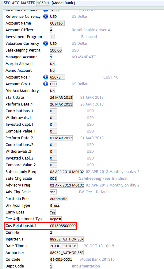 Then, the CUSTOMER.RELATIONSHIP application is linked to portfolio using the Cus Relationship field in the SEC.ACC.MASTER application. The CUSTOMER.RELATIONSHIP application has the effective date as part of the ID, so that the underlying application can process the tax by considering the latest record. It also ensures that the existing record is not changed even if there are any amendments in the customer.relationship application. The amendments are done through a new record in CUSTOMER.RELATIONSHIP, so that the historical information are retained in the system.