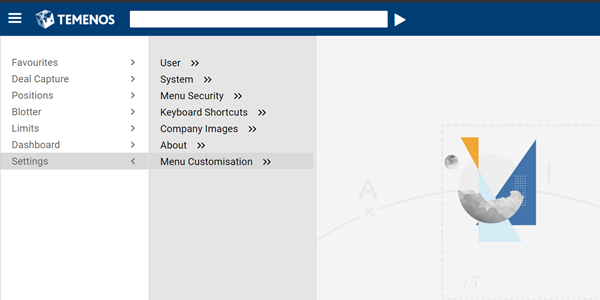 - Log on to TFO and go to Settings>Menu Customisation.
