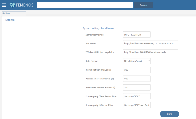 | Treasury Front Office Root URL (for deep links) | Set the TFO homepage URL. |