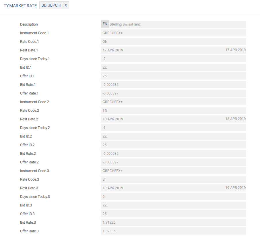 TY.CURRENCY.PAIRand enter GBPUSD to create a new record. A new record is displayed. - Type the full name or short form of the currency pair name.