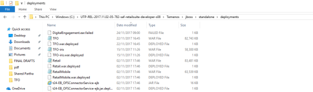 TFO.War, navigate to the existing deployment folder (Temenos>JBoss>Standalone>Deployments). - Paste the