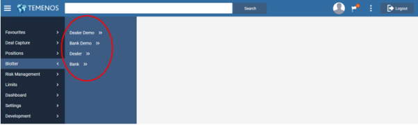 Each item has sub-menu available. The sub-menu available for Blotter is given below.