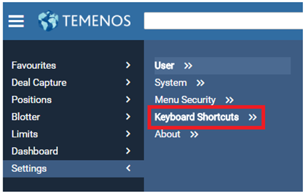 User can customise the keyboard shortcuts to access screens directly. The keyboard shortcuts settings can be set or controlled by navigating to Settings>Keyboard Shortcuts.