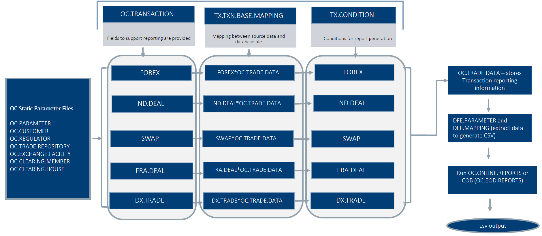 - Transaction reporting database (OC.TRADE.DATA) is the same for all OTC applications, and mapping records should be defined for every OTC application that are to be reported.