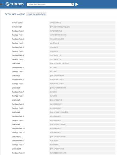 This table is used to store the static data of the Temenos Transact banks and other tables, which store the static data of the concerned parties such as Counterparty, Trade Repository, regulatory and so on. Below are the TXN records mapped in the TXN tables of Transaction and Collateral & Valuation enquiries:
