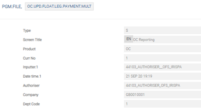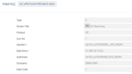 The user needs to configure the following records in PGM.FILE (Type as ‘S’ and Product as ‘OC’), which supports EMIR reporting: