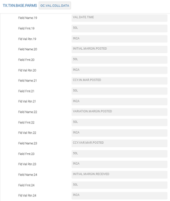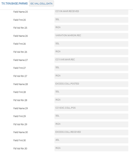 A sample screenshot of TX.TXN.BASE.PARMS record for OC.VAL.COLL.DATA is shown in the below screenshots.