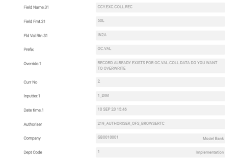 This application enables the user to map the fields. The ID of the record needs to be in the following format: APPLICATION*OC.VAL.COLL.DATA.
