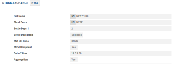 The Industry Code field defines the industry to which the instrument belongs too. This critical information is required for several regulatory reports, such as, for defining portfolio strategies and for rebalancing portfolios. This field links to the SC.INDUSTRY application. The stock exchange at which the security is normally traded is provided in the Stock Exchange field. This field accepts a valid record in STOCK.EXCHANGE.