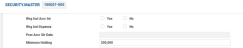 The Trade Currency, Trade Exch, Alt Sec Id and Alt Sec No fields are part of an associate multi-value set and can be used to define the various currencies and exchanges in which the security is allowed to be traded and also the relevant alternate index that is applicable. These fields can be set only if the Alt Index Check field is set to YES in the SM.PARAMETER.