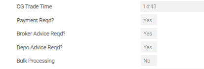 | Broker Gross Accrued | Includes the consideration and any interest, if applicable. The Broker Gross Accrued field is a no-input system generated field, which illustrates the basic amount of the transaction and any interest (if applicable). Re-verify this field to ascertain that the trade proceeds prior to the addition or subtraction of any commissions, taxes, charges and other ad hoc amounts that affects the overall transaction proceeds |