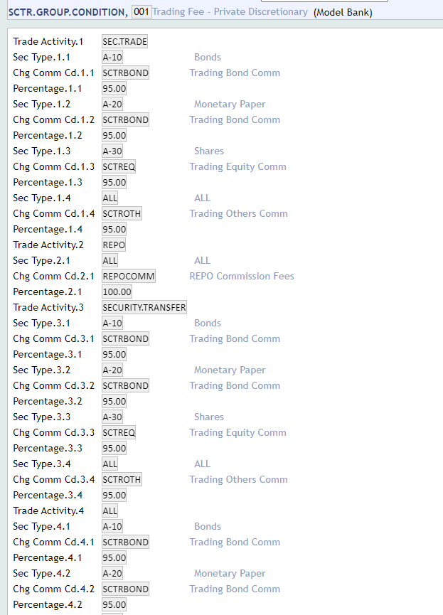 When a CUSTOMER record is created in Temenos Transact, the system determines the default group to which customer belongs for trading commission, and updates the group details in CUSTOMER record in CUSTOMER.CHARGE. User can change the system calculated group and update the actual group for the customer and/or for each portfolio.