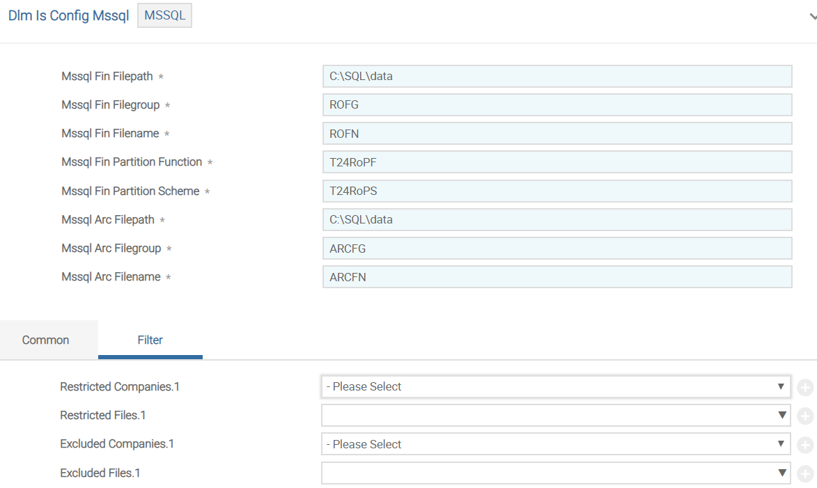 For Oracle database, you need to use version DLM.IS.CONFIG, ORACLE and configure the details in ORACLE record. DLM.IS.CONFIG,COMMON and DLM.IS.CONFIG,FILTER versions are added as associate versions to DLM.IS.CONFIG, ORACLE.