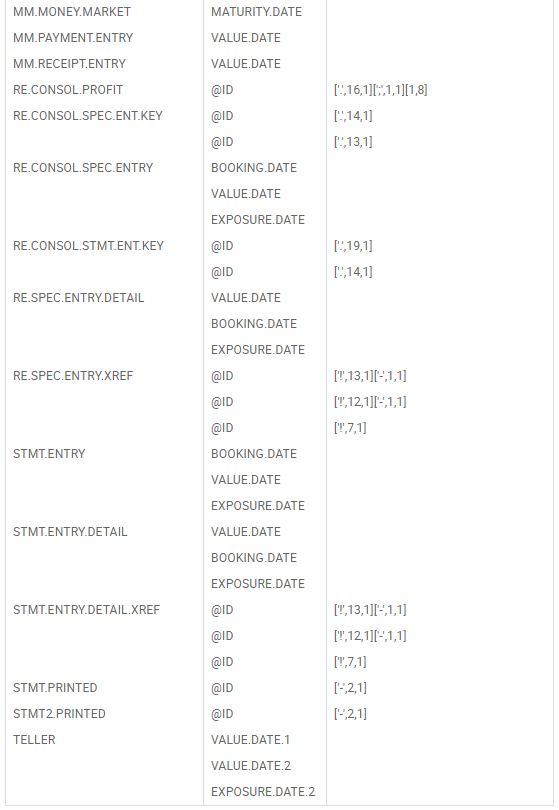- RELATED.FILES (OUT Parameter 1) – Information of related files to be archived in the File name, File ID, Archival Flag separated by @VM format. If there are multiple related files, each file information can be delimited by a @FM marker. For example, upon archiving LOANS.AND.DEPOSITS records, its balance file records must be archived. So, pass the balances file name, its ID and Y to the Archival flag.