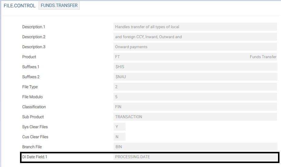 The Main File field accepts the file name that has to be archived. For example, FUNDS.TRANSFER$HIS.