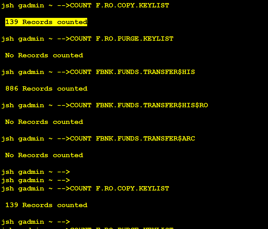 As per the above example screen captures, when the COPY process completes, 139 records read from RO.COPY.KEY.LIST must have been written in RO.PURGE.KEYLIST.