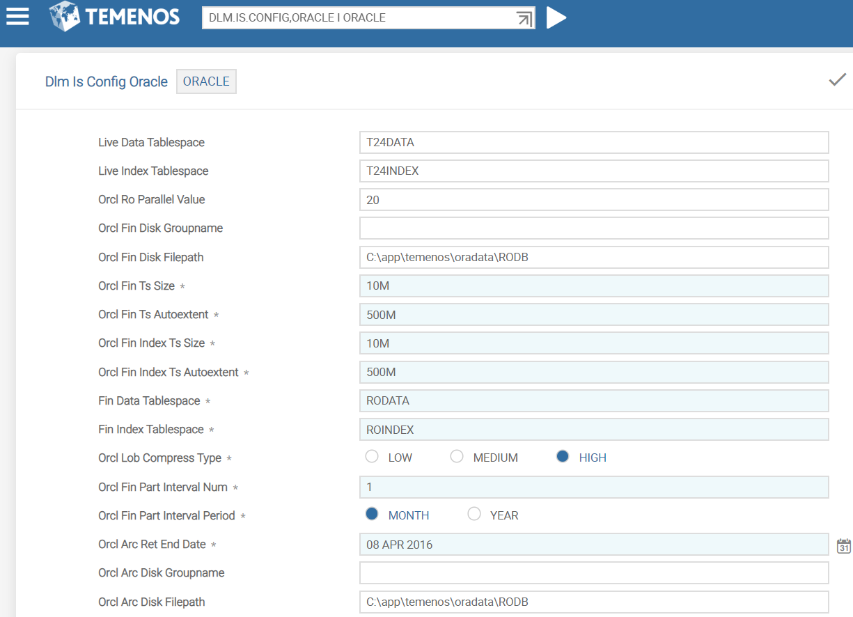 Indicates the Oracle advanced compression option. (LOW, MEDIUM or HIGH). NOTE: Oracle’s advanced compression license is mandatory before implementation, to use this option.