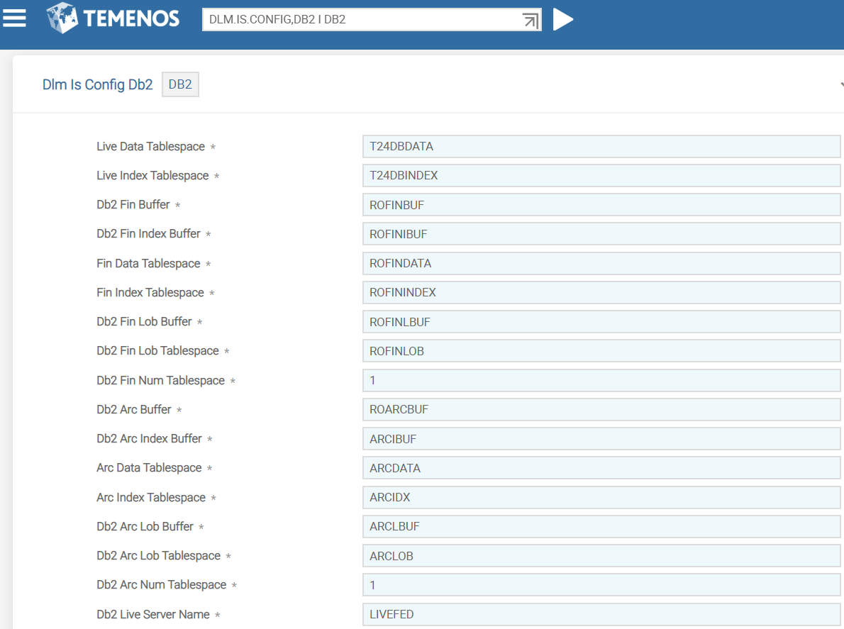 Indicates the name of the tablespace in the Temenos Transact database used for Temenos Transact data |