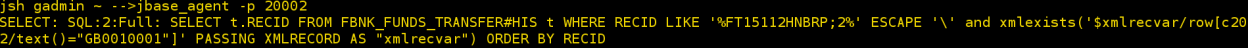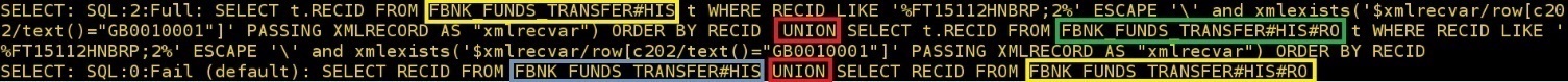 The following JQL select statement shows that the enquiry fetched records only from the FBNK.FUNDS.TRANSFER$HIS table in the LIVE database.