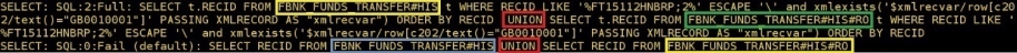The JQL select statement shows that a SELECT – UNION query was run.
