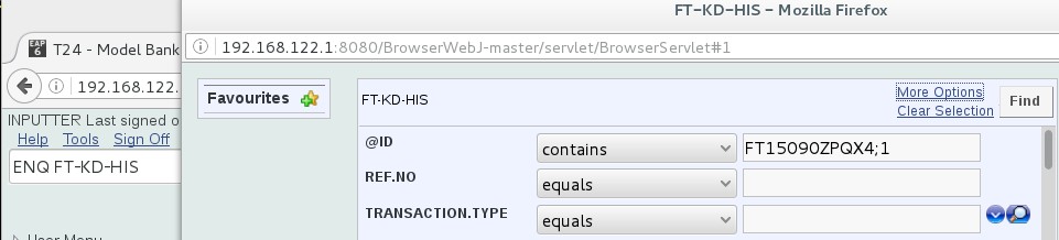 In Temenos Transact BrowserWeb, you need to use the selected LIVE RECID to submit an enquiry for the Funds Transfer record in the LIVE database.